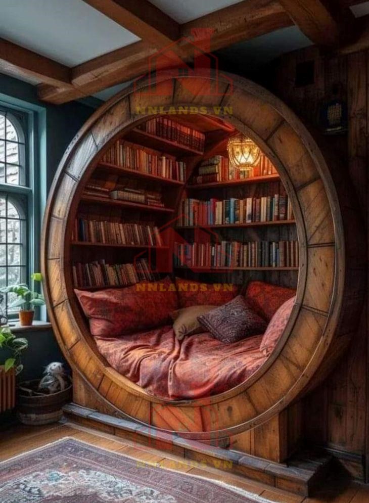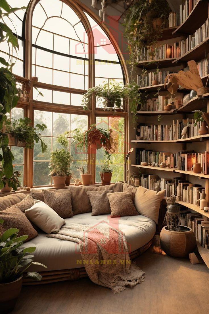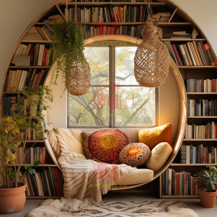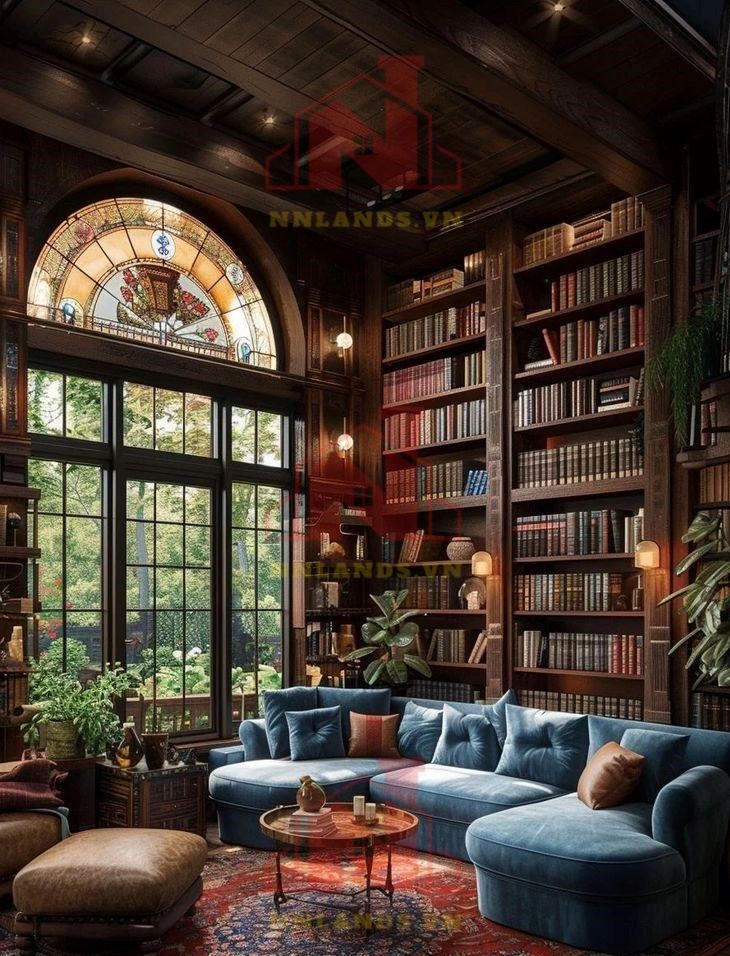 Không gian kết hợp này thường được thiết kế với nhiều cửa sổ hoặc kính cửa sổ lớn để tận dụng ánh sáng tự nhiên. Ánh sáng tự nhiên không chỉ tạo ra một môi trường làm việc thoải mái mà còn tạo ra một không gian đọc sách sáng sủa và dễ chịu. Hãy sắp xếp bàn làm việc gần cửa sổ để tận hưởng cảm giác thoải mái và cảm hứng từ bên ngoài.